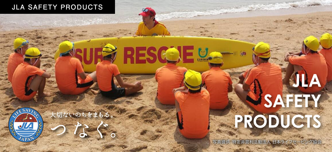 海やプールといった水辺の事故を防ぐべく、AKASHI S.U.C.はJLAの活動をサポートし、パートナー企業としての承認を受けています。さらに「安全と安心」をテーマに、スクールスポーツウェアおよびその関連商品=JLA SAFETY PRODUCTSの開発を行っています。子供たちの安全を願う気持ちはJLAも当社も同じです。ともに海辺・水辺の事故ゼロを目指して活動していきたいと考えています。