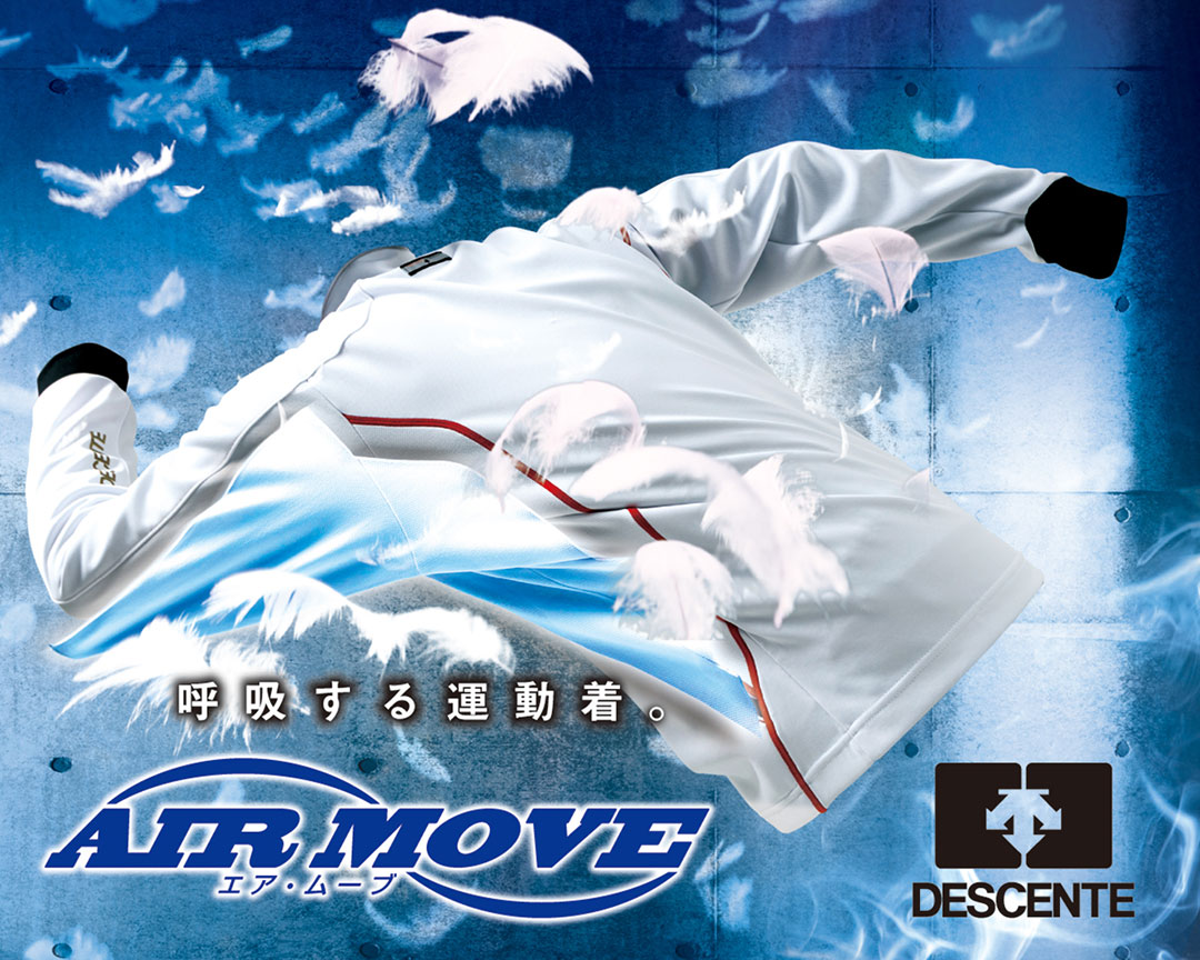 エア・ムーブは身体から出る湿気・汗を吸収し、通気性を向上させる快適素材です。ベンチレーション機能で衣服内の温度上昇を抑え、快適な着用環境を実現します。